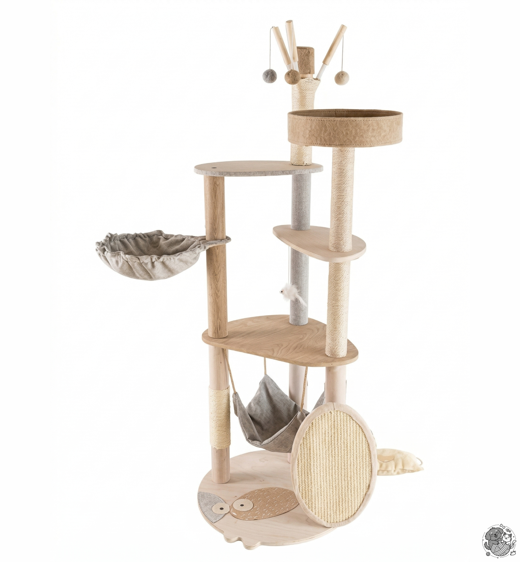 46" & 57” Luxury Real Wood Branch Cat Tree – Aesthetic Multi-Level Cat Tower with Cloud Beds & Heavy-Duty Base for Large Cats & Maine Coons
